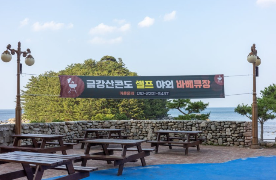 금 강산콘도는 지하 1층에, 편의점, 노래방, 음식점, 치킨집, 등이 있었는데... 그 지하 1층이 바로 바다로 나갈 수 있는 통로로 연결되어 있어서 바다를 오가며 이용하기가 편리했다.