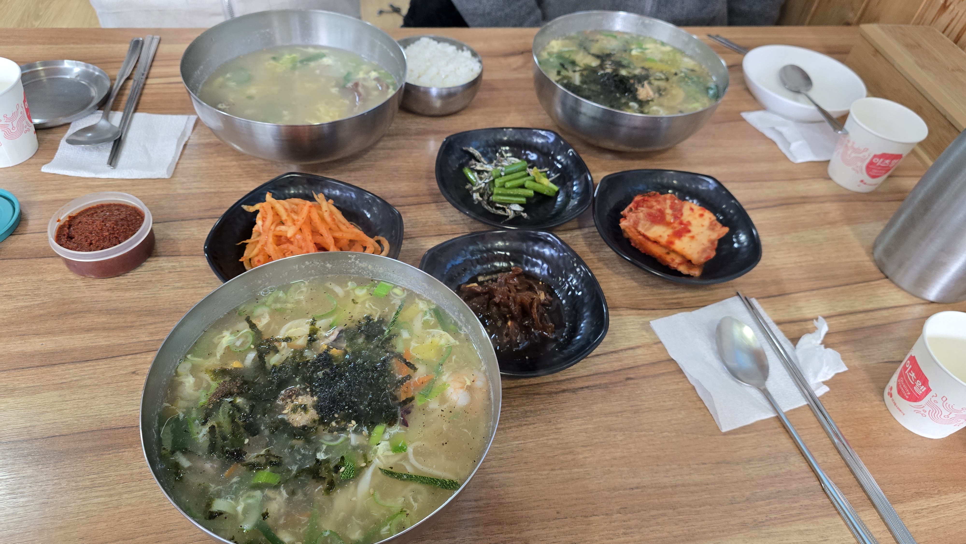 - 아침에 밀가루 음식을 원치 않으시면 공기밥 추가해서 양념장 넣은 해물칼국수 국물에 밥을 말아 드셔도 될 것 같다. 양이 너무 많아지려나 ^^