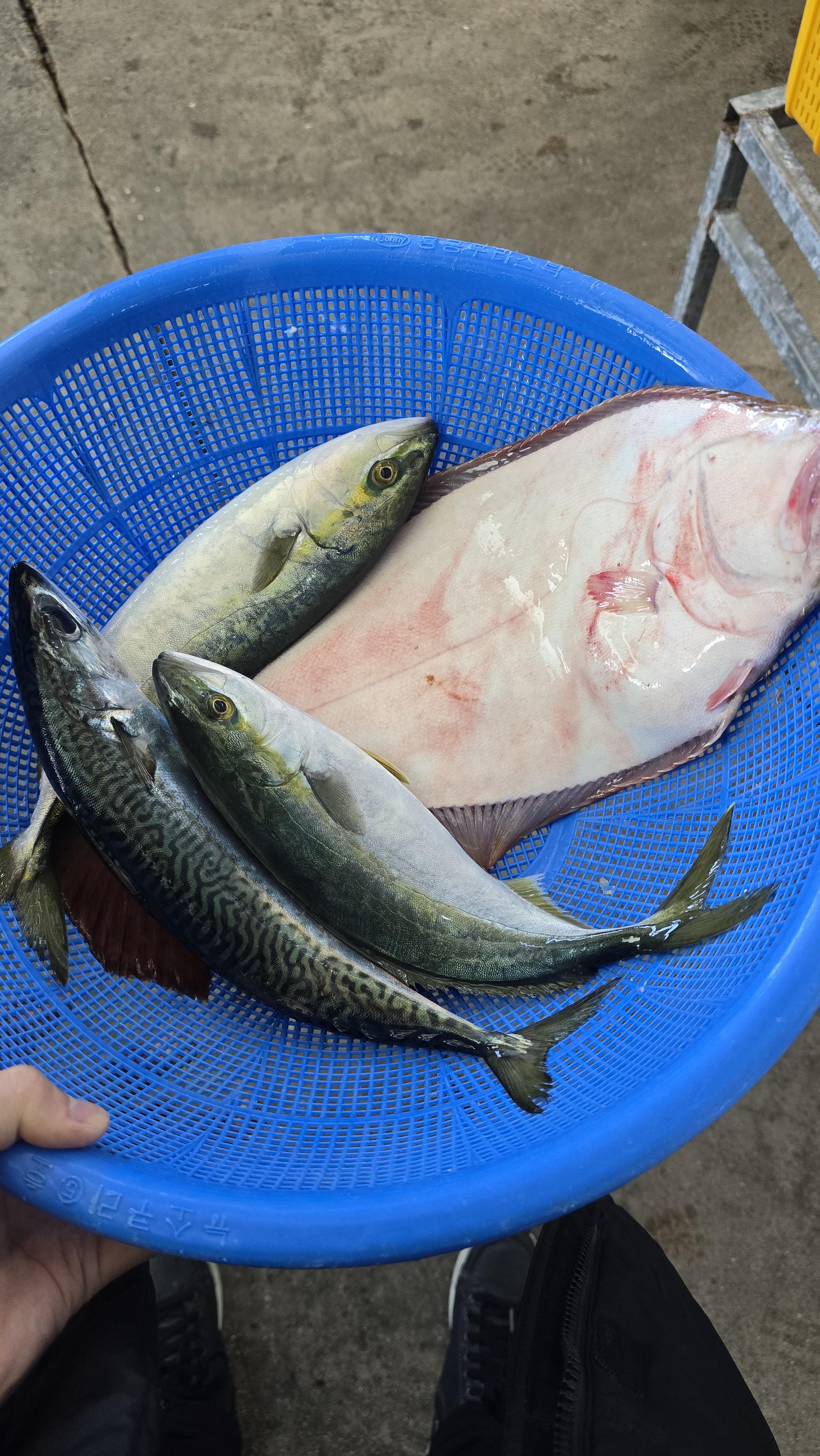 자연산 광어뿐 아니라 고등어, 방어, 고등어만한 크기의 전어까지 받았다.