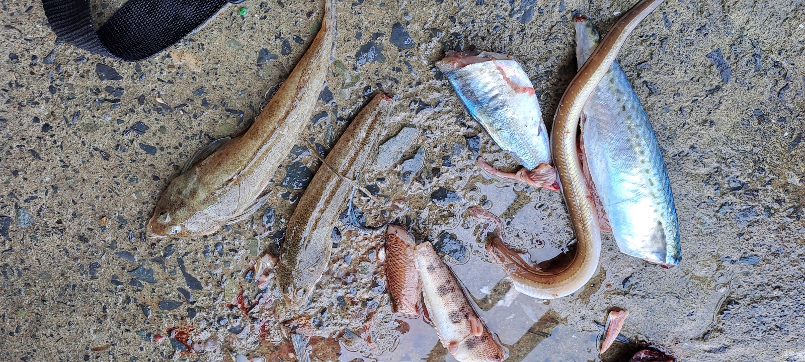 저희 부부는 저 어종들이 사라지고 사람들도 사라지면 그때부터 원투 낚시를 하였는데 원투낚시로는 밤이 되어야 입질이 더 활발했습니다. 어종은 보리멸, 이름 모를 저 위 사진의 물고기, 그리고 애기 장어들을 잡았습니다.