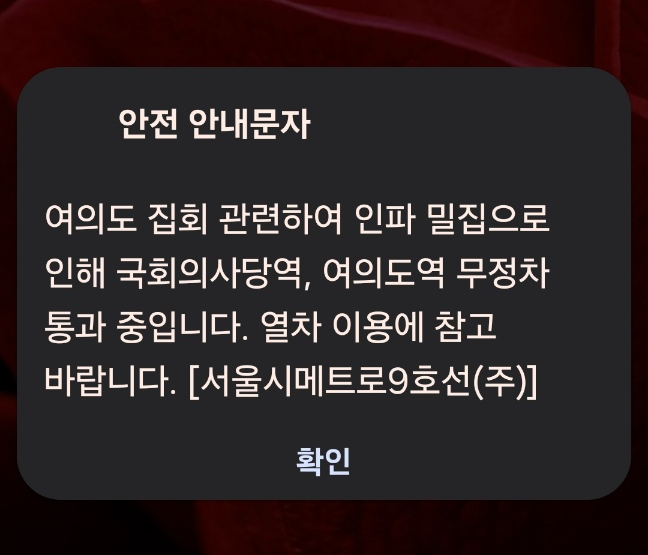(후에 안 사실이지만 그 속보는 더 일찍 있었는데 집회 현장에서는 인터넷이 먹통이라 알 수가 없었고 지하철에서 인터넷이 터진 곳에 가서야 그 소식을 접했다.)