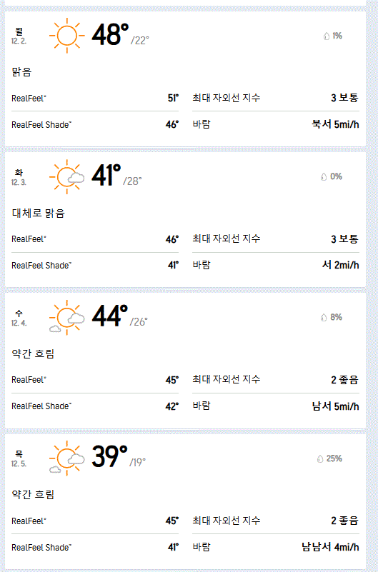 그래도 가까운 날씨는 AccuWeather 보다 우리나라의 경우 기상청이 더 정확한 편이다.