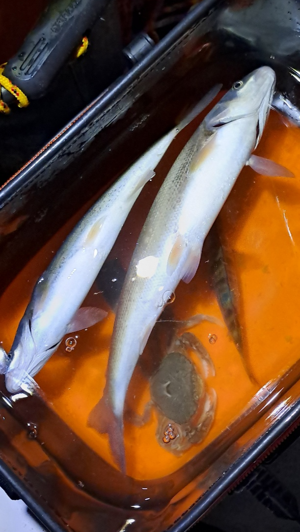 첫째 날 : 놀래미 1마리, 황어 2마리, 옆에 분이 주신 게 한마리