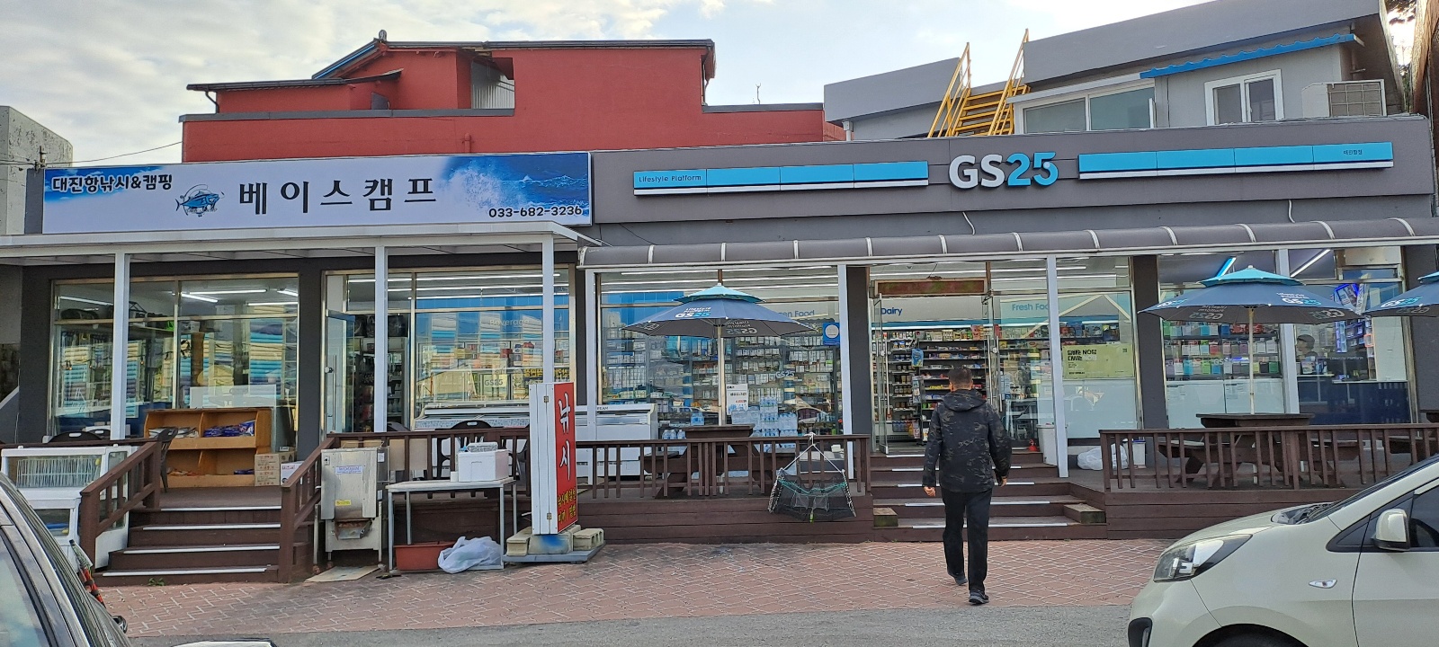 이 낚시점과 편의점 앞이 주차장이다.