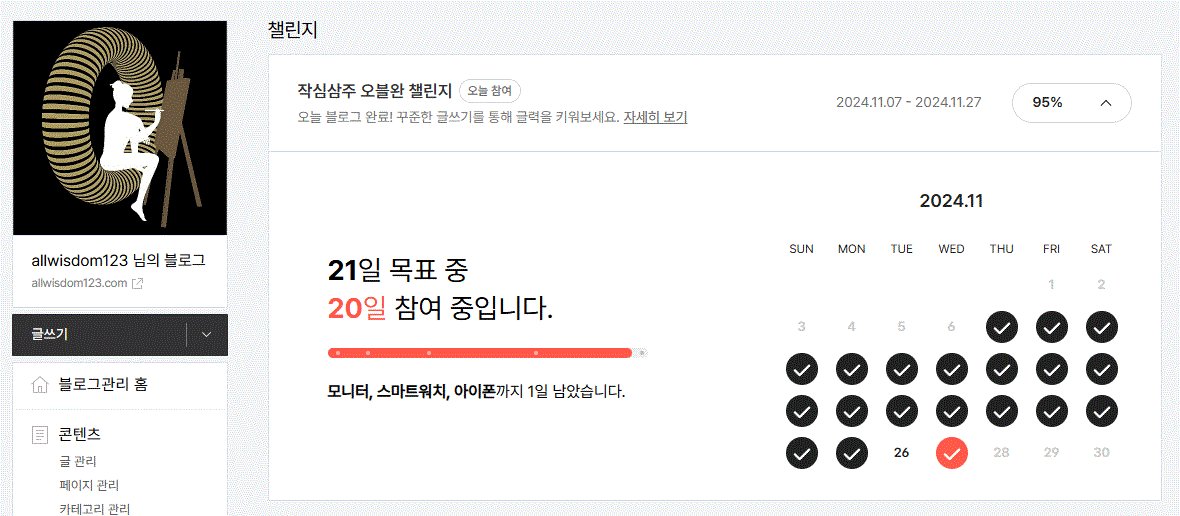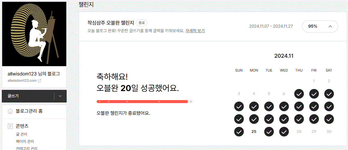 그래서 지금 다시 나의 챌린지 체크란은 완불 상태이다.