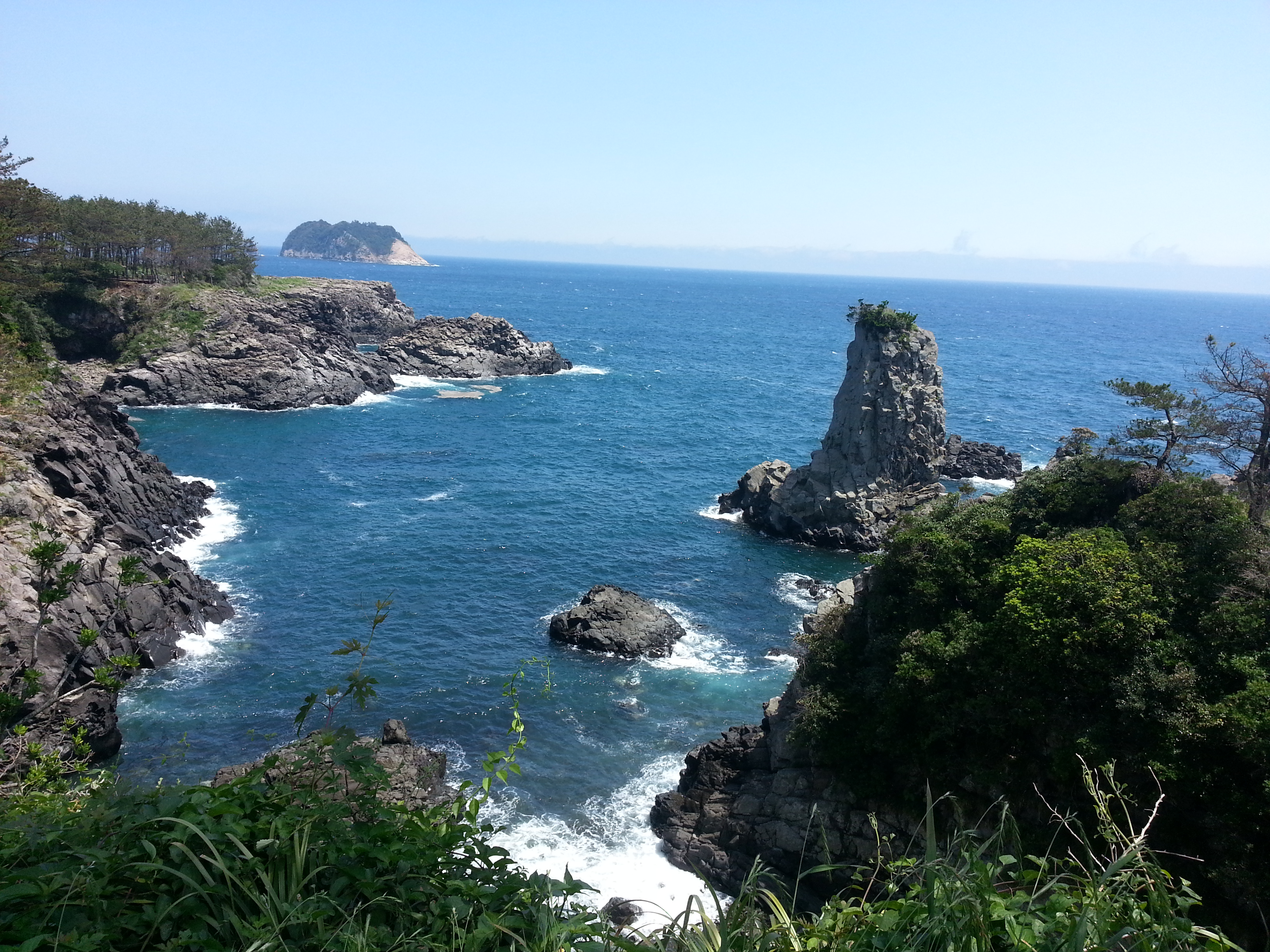 낚시 하는 곳에서 보이는 풍경 / 오른 쪽 사진은 낚시가게 아주머니가 알려주신 낚시 포인트 바윗 길 (고양이가 우리가 주는 고기를 기다린다)