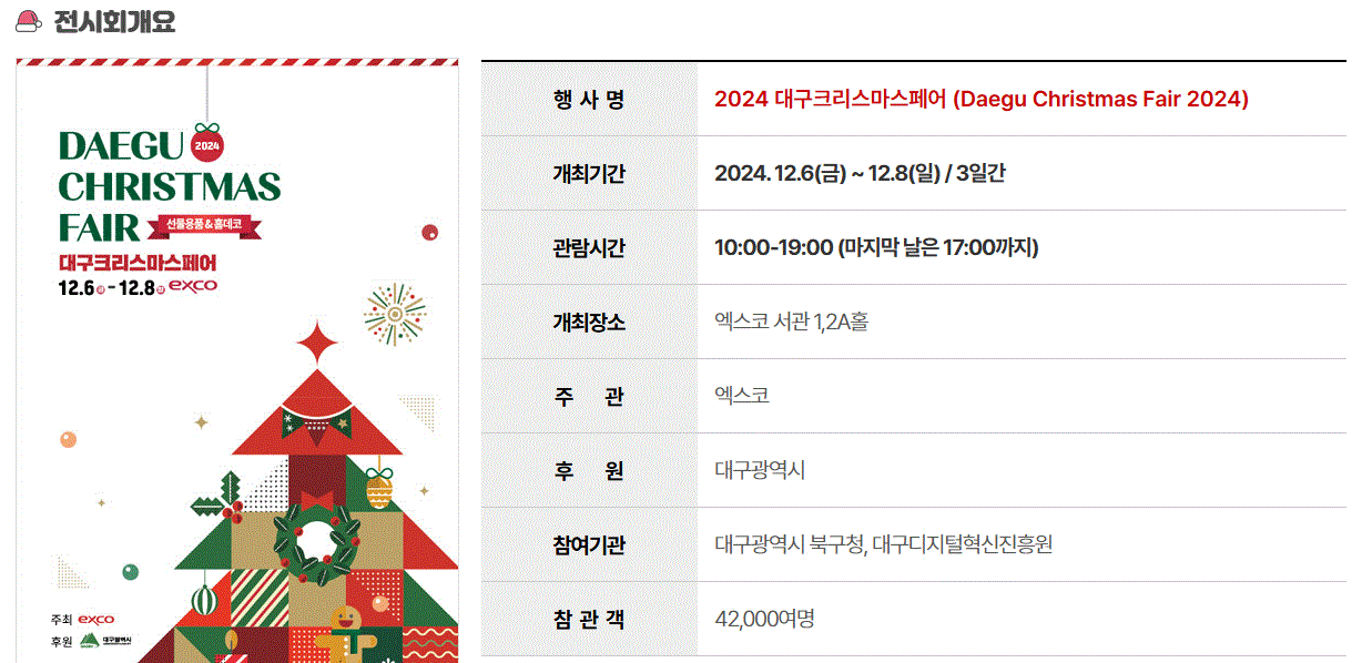 2024 대구 크리스마스 페어 행사 관련 싸이트 바로가기 >