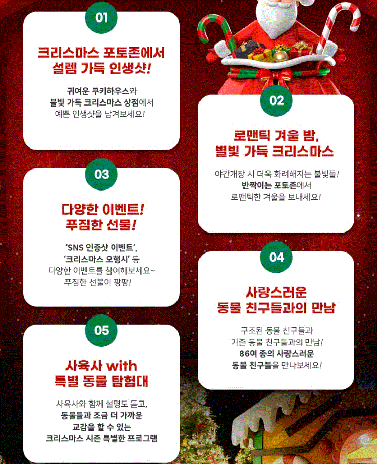 - (3구역: 산타마을 놀이광장) : 스페셜 크리스마스 포토존, 체험 이벤트존 등