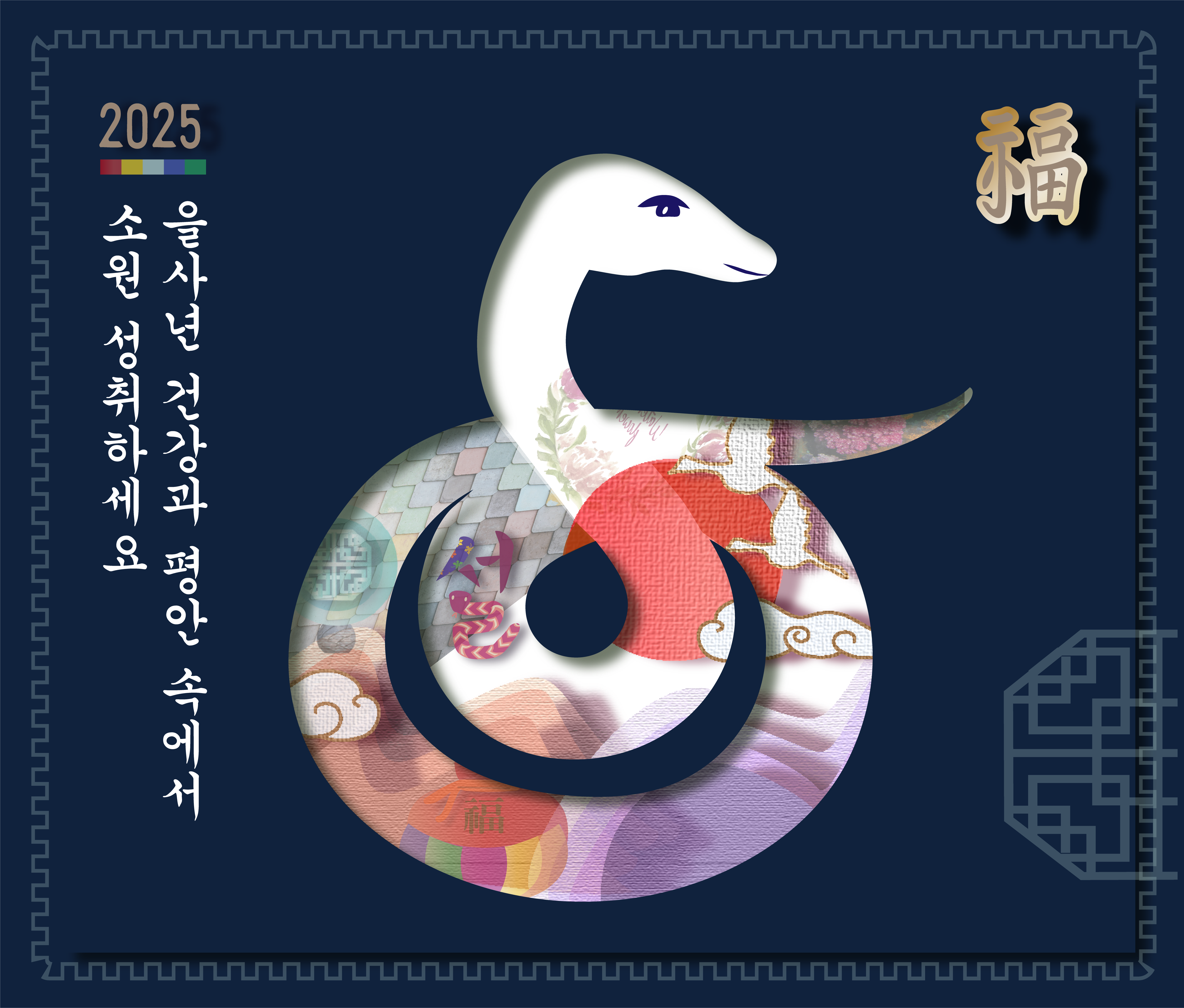 을사년 뱀을 주제로 하여 건강과 평안 속에 소원 성취하시기를 바라는 인사말을 담은 카드