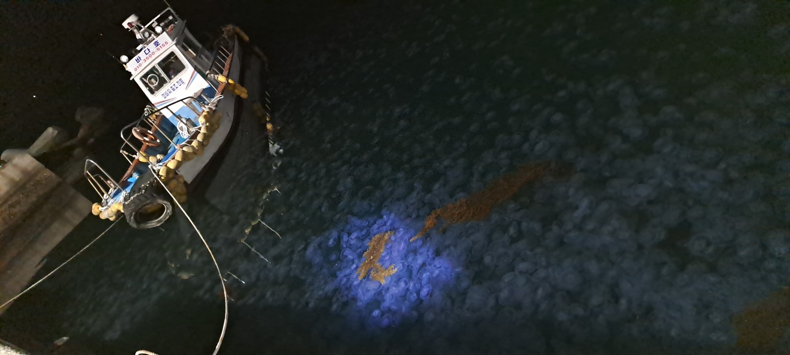 밤 8시가 넘어가니 어디서 왔는지 해파리가 모여들었는데 점점 바글바글 해졌고. 이러면 갑오징어는 안 나온다고 낚싯대를 접고 떠나는 분들이 많았다.